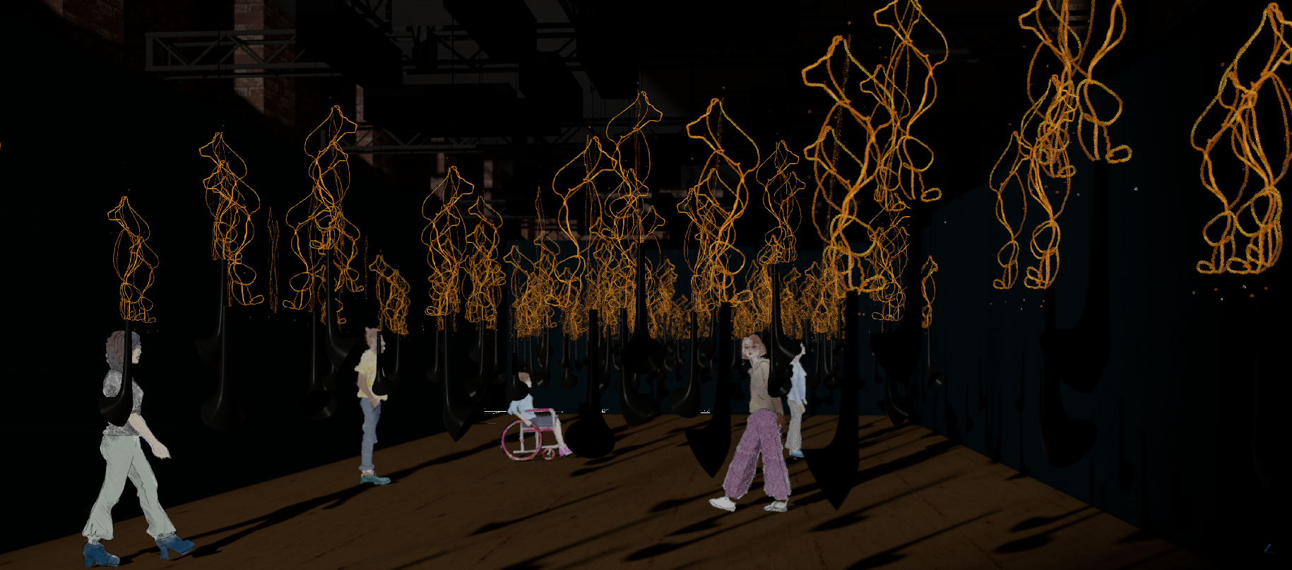 Please be advised that this installation features low lighting. The installation is wheelchair accessible and gender neutral accessible toilets are available.