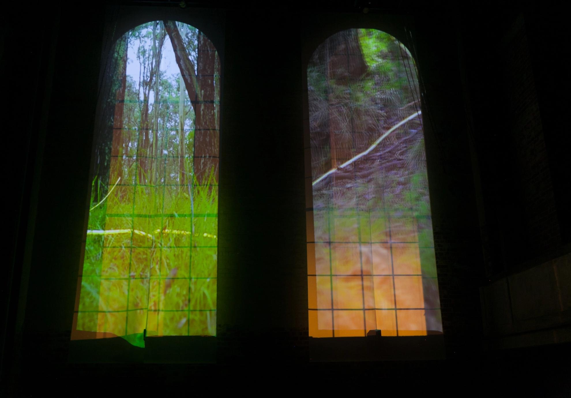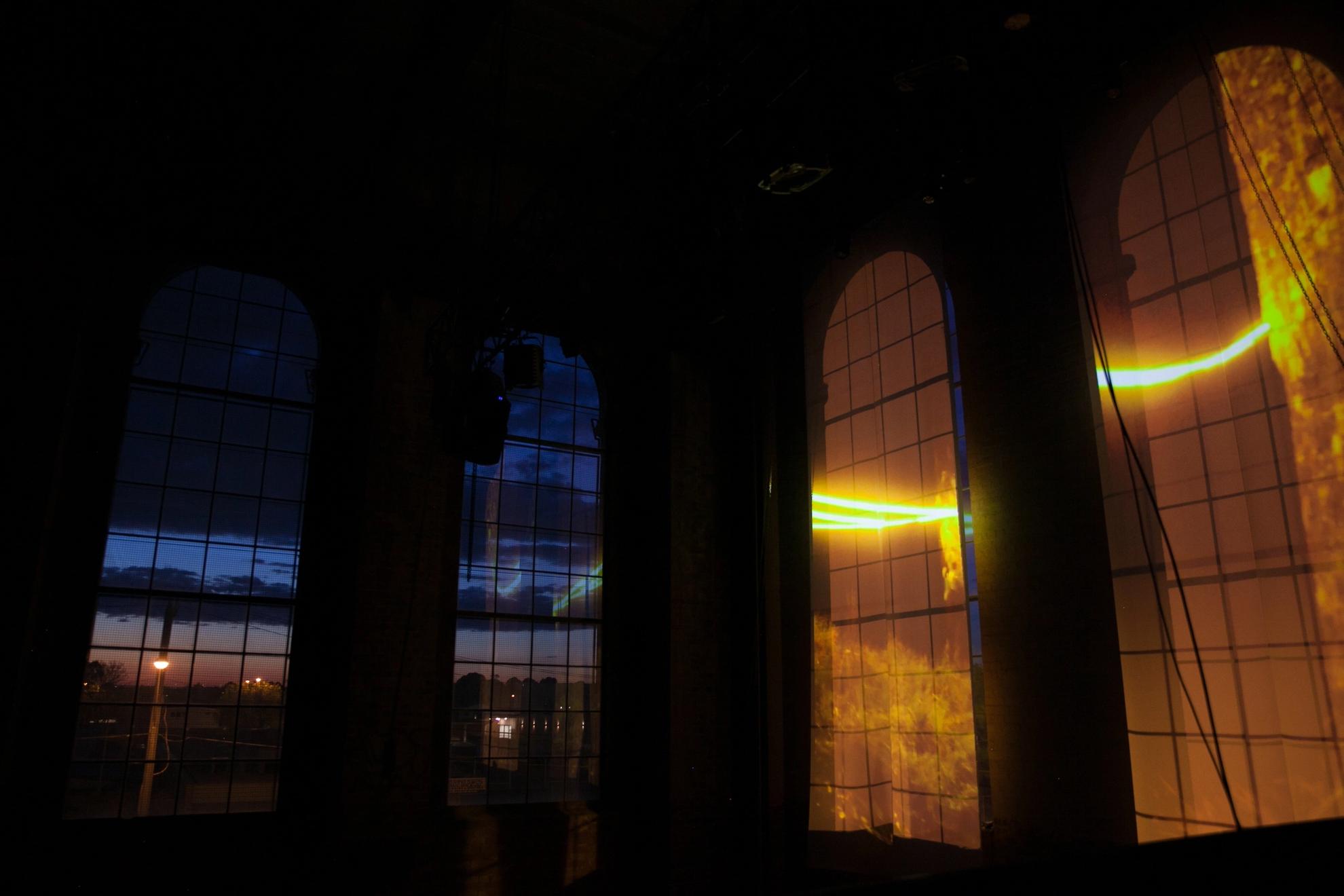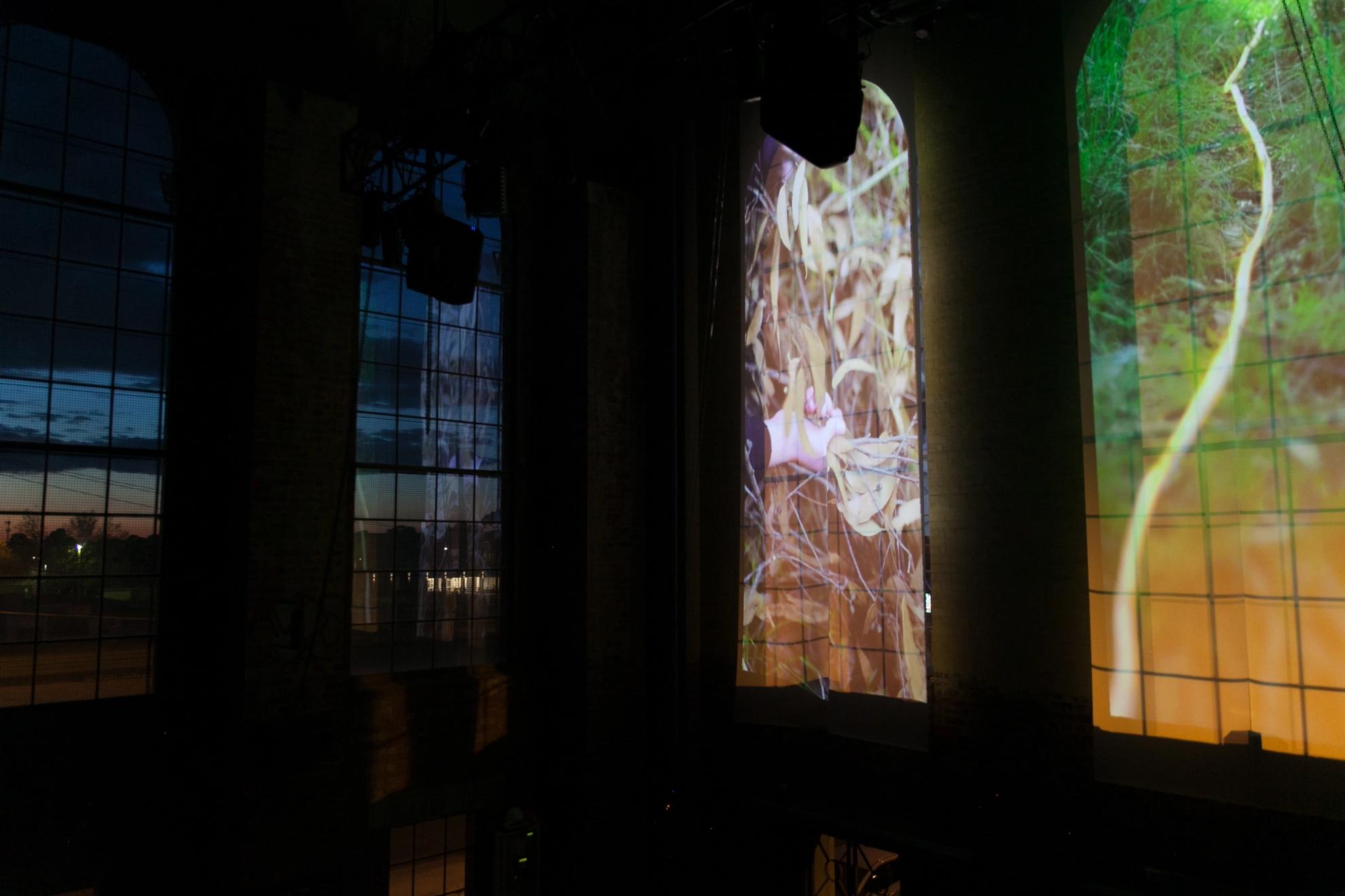 Cast over two of The Substation’s arched windows, Current is a video projection piece by Pierra Van Sparkes. Informed by The Substation’s past of providing electricity and transportation, Current contemplates the history and architecture of the site, linking it with the artist’s experience of cycle and connection, past and place. We follow a line of light, looped around and between trees surrounding the artist’s family home: mimicking childhood circuits between Mum and Nan’s house, and marking renewed movements in the space.