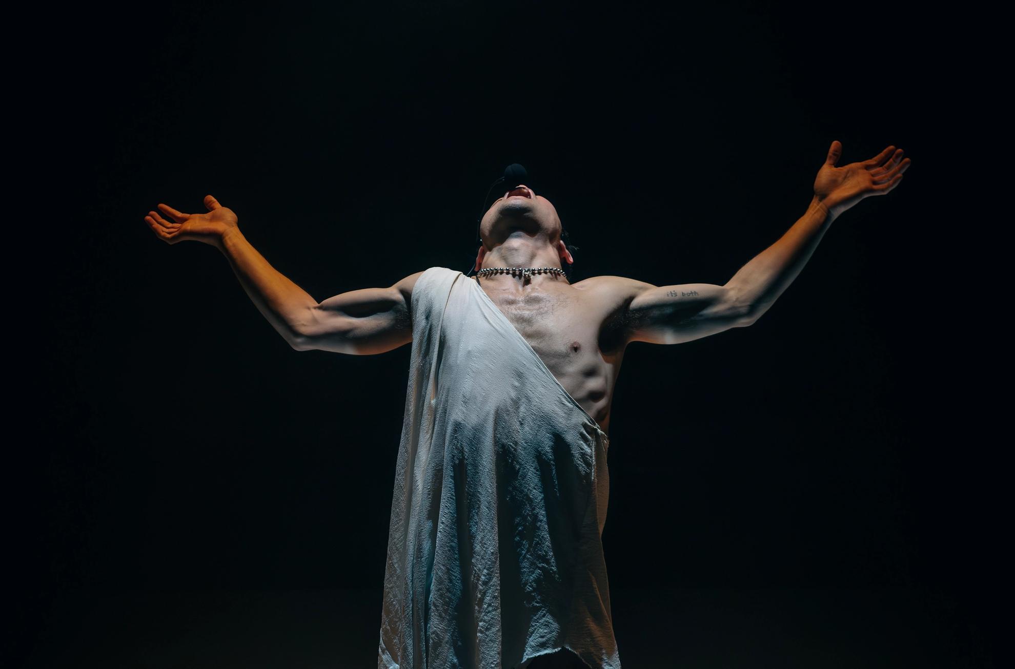 Ecstasy expands the artists’ 2024 album to an operatic scale, placing body and voice into a ritualistic communing with light and sound from above and below. A choreographic investigation into the reckless abandonment of the rave—a reach into the place where dancefloor heat goes beyond the beyond.