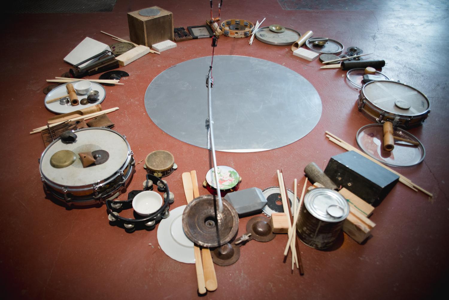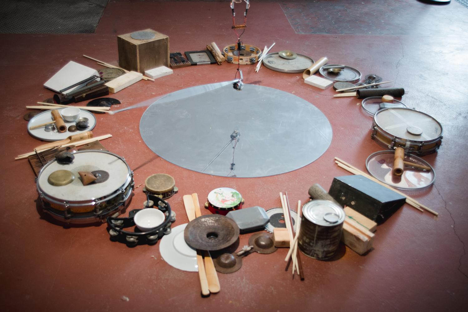Motorgenic represents Avenaim's current position negotiating an ongoing loop, whereby his intervention (i.e. physical and robotic modification of the drums) paired with an artificial “brain” and programming, necessitate new ways of listening to, playing and understanding percussion in an expanded contemporary field. Avenaim's work presents acoustic music that’s performance exists beyond the realm of human dexterity, whilst retaining the human element of aesthetic decision making. Avenaim has spent over seven years inventing and implicating machines in an improvisational context, looking for ways for them to inspire and guide the music. What has come out of these experiments are new directions in rhythm, texture and groove which are simultaneously autonomous and manipulated, contingent and compositional. Motorgenic expounds on the findings of these improvisational experiments and uses them as raw material for a durational installation.
