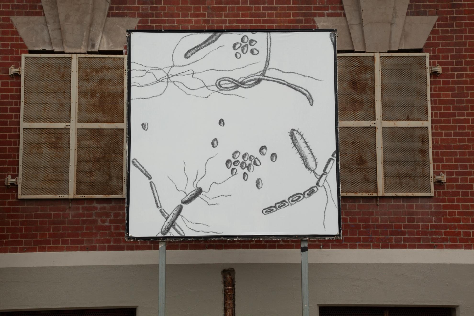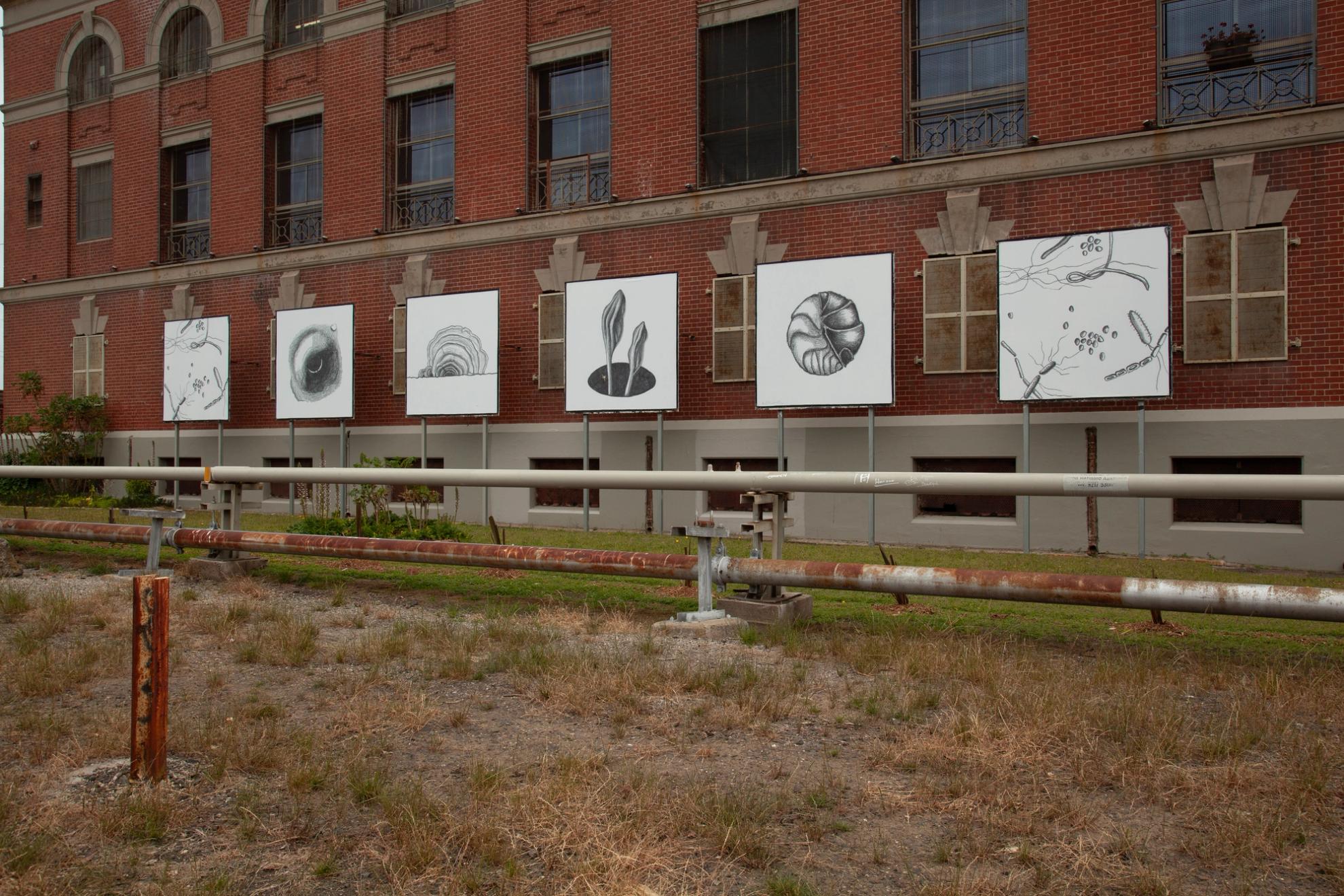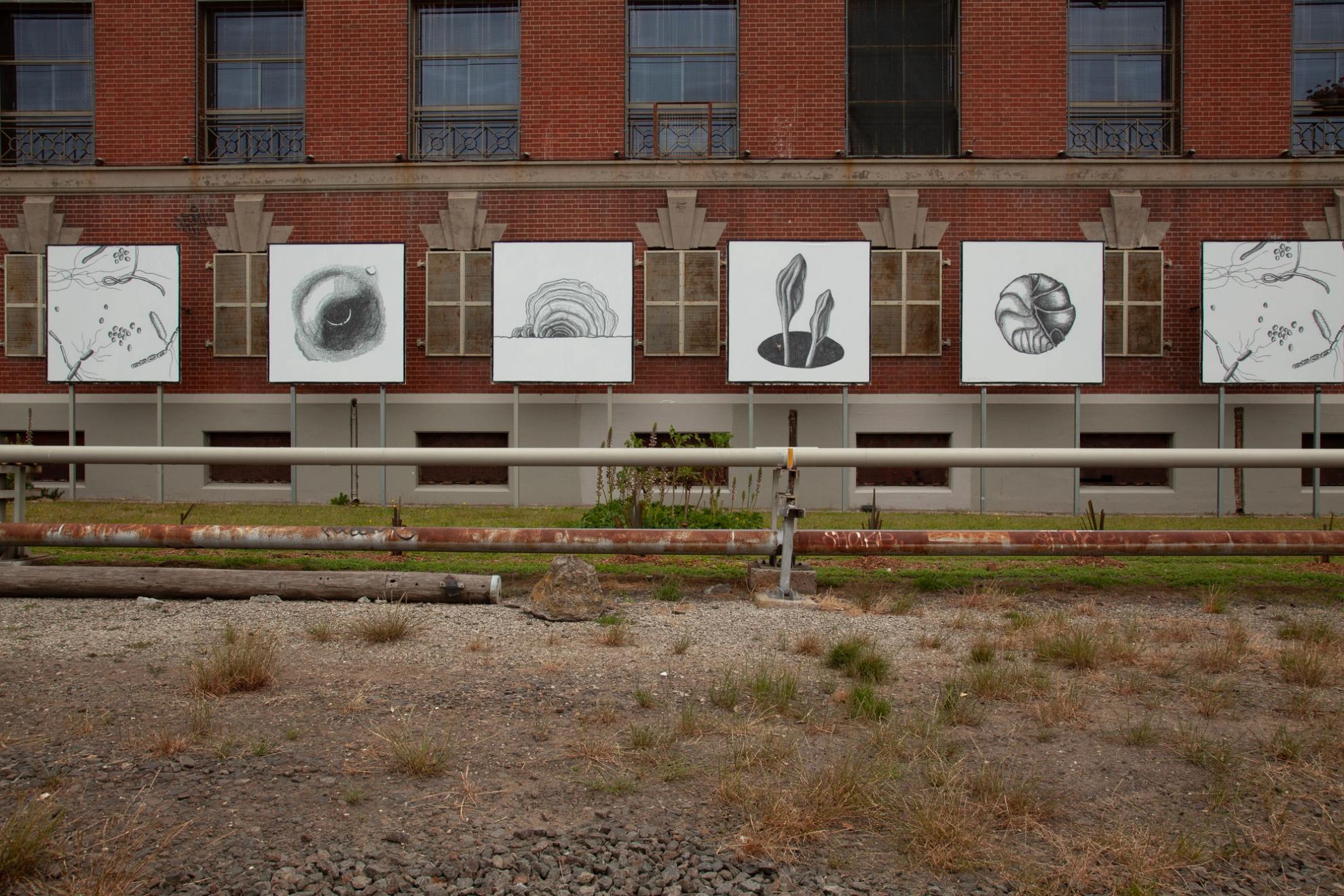 Focused on processes of decay and transformation of a forest understory, Recompose was originally presented as a deck of divination cards. This imagery is now blown up in scale to grace the exterior side of The Substation's building, viewable from the the Werribee and Williamstown train lines and the adjacent public footpath.